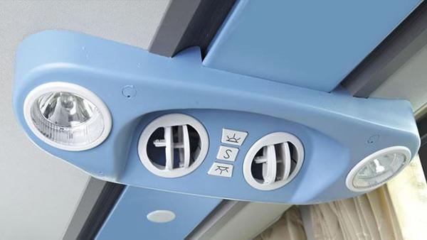 شما می توانید نوع و حجم موتور را مطابق با شرایط مورد نیاز خود انتخاب نمایید. تعداد صندلی های این مدل 45+1+1 است . کولر سقفی غیر مستقل ساخت KING LONG برای تنظیم دما و تضمین راحتی داخل اتوبوس بین شهری روی آن نصب شده است.