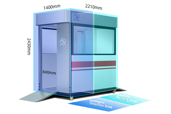ایستگاه هوشمند King Long یک پلتفرم مدیریت مفهومی برای ایمنی ورود و خروج است که شامل ناحیه بررسی هوشمند و ناحیه اسپری اتوماتیک است. این ایستگاه می تواند خدمات یک-توقفه شامل اندازه گیری دما، تشخیص پوشش ماسک، بررسی ورود هوشمند، اسپری و تمیزکاری را ایجاد کند. کل فرآیند بصورت هوشمند و بدون تماس می باشد.
