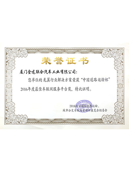 جایزه بهترین پلتفرم خدمات IoV در سال 2016 (تهیه کننده راه حل های صنعت Kingwing برای صنایع)