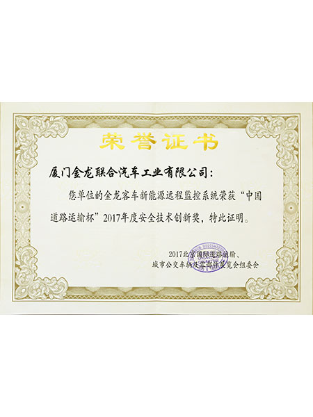 جایزه برای بهترین اتوبوس های انرژی نو در جام حمل و نقل جاده ای چین، جایزه برای بهترین نوآوری فنی ایمنی در جام حمل و نقل جاده ای چین