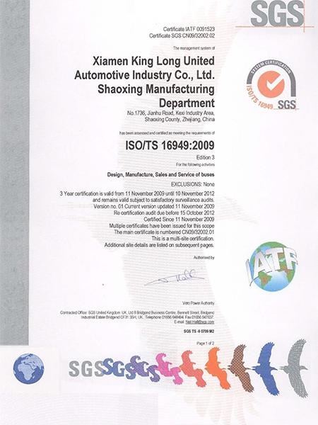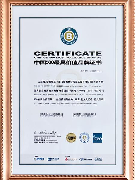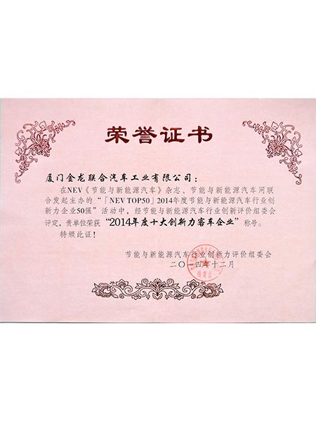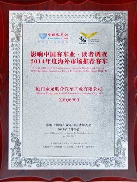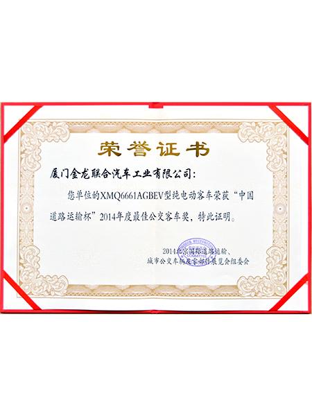 جایزه بهترین محصولات فن آوری زیست محیطی، جایزه بهترین اتوبوس های بین شهری، جایزه بهترین پلتفرم سرویس شبکه خودرو، جایزه بهترین اتوبوس انرژی نو و جایزه بهترین اتوبوس در جام حمل و نقل جاده ای چین در سال 2014