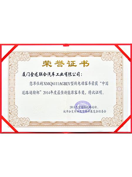 جایزه بهترین اتوبوس انرژی نو در جام حمل و نقل جاده ای چین در سال 2014