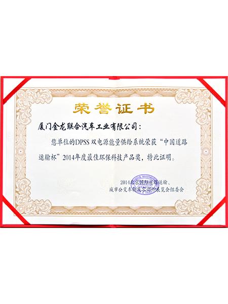 جایزه بهترین محصول فن آوری زیست محیطی در جام حمل و نقل جاده ای چین در سال 2014