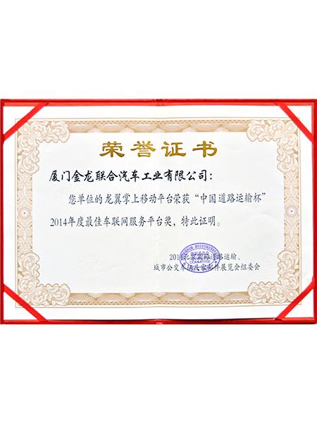 جایزه بهترین پلتفرم سرویس شبکه ای خودرو در جام حمل و نقل جاده ای چین در سال 2014