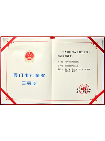 جایزه رتبه سوم ثبت اختراع در شیامن