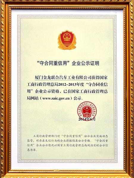 شرکت قابل اعتماد و صادق در استان فوجیان در 2012-2013