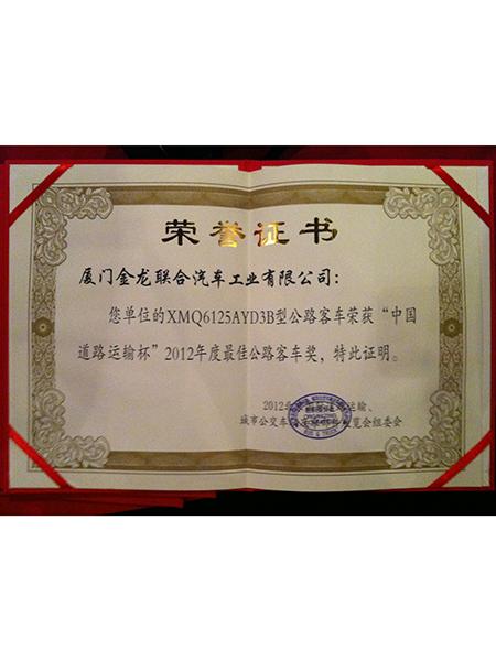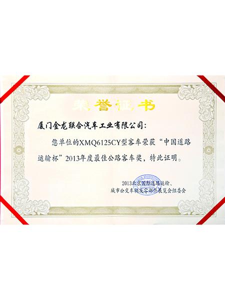 جایزه بهترین اتوبوس در جام حمل و نقل جاده چین در سال 2013