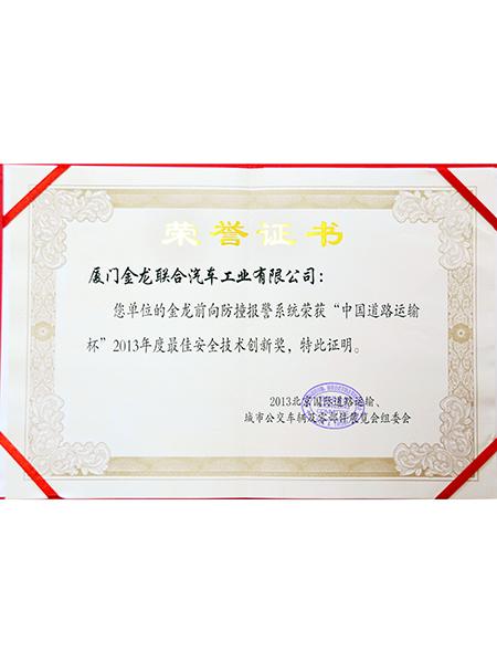 جایزه نوآوری بهترین فن آوری ایمنی در جام حمل و نقل جاده چین در سال 2013
