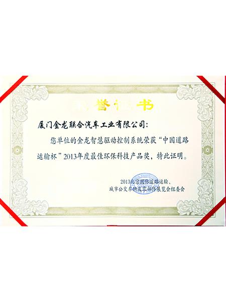 جایزه بهترین محصول فن آوری زیست محیطی در جام حمل و نقل جاده ای چین در سال 2013