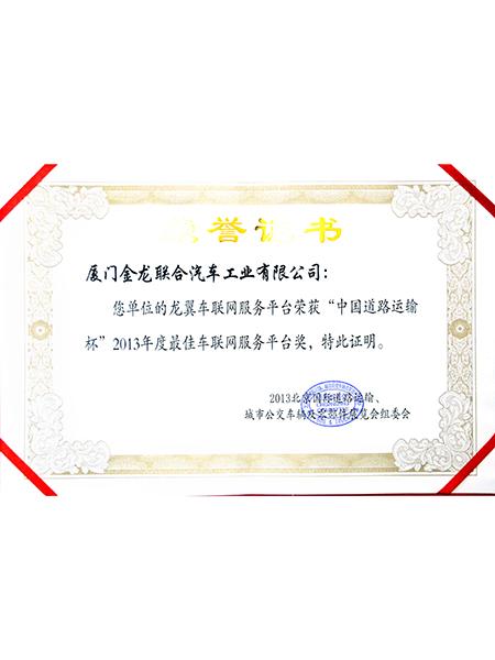 جایزه بهترین پلتفرم سرویس شبکه خودرو در جام حمل و نقل جاده ای چین در سال 2013