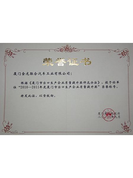 جایزه پیشبرد کیفیت برای شرکت های دارای محصول صادراتی در شیامن در 2010-2011