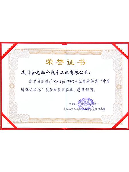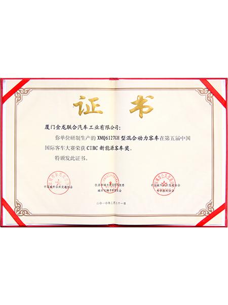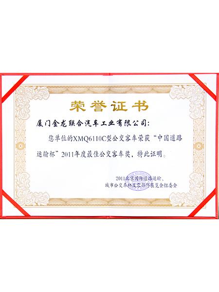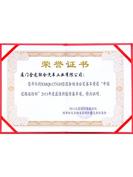 جایزه بهترین اتوبوس انرژی نو در جام حمل و نقل جاده ای چین در سال 2011