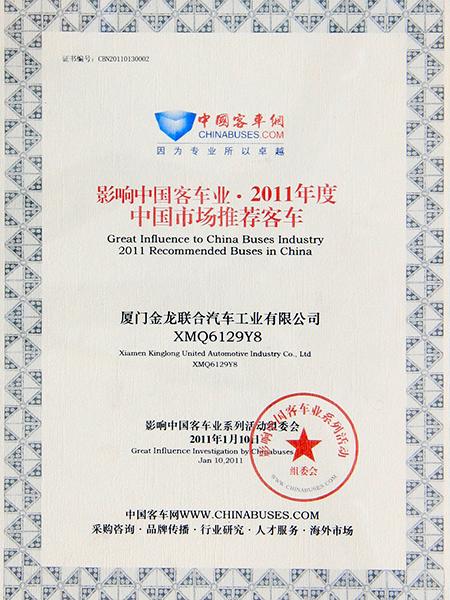 جایزه بهترین اتوبوس چین در جام حمل و نقل جاده ای چین در سال 2011