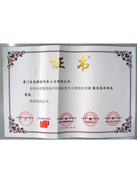 جایزه طلایی در بین اتوبوس های گردشگری بین شهری CIBC در چین