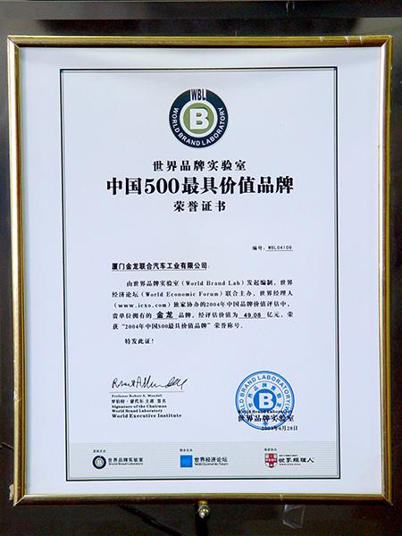 گواهی 500 نام تجاری با ارزش چین در سال 2004
