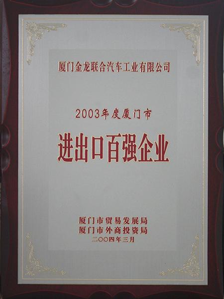 100 شرکت برتر صادرات واردات شیامن در سال 2003