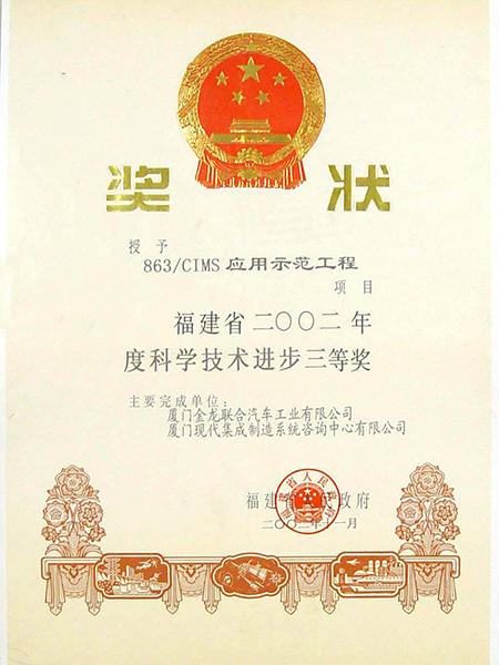 جایزه سوم پیشبرد علم و فن آوری در استان فوجیان در سال 2002