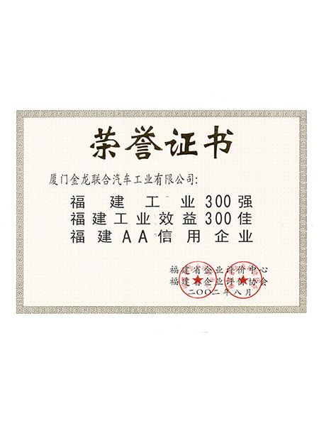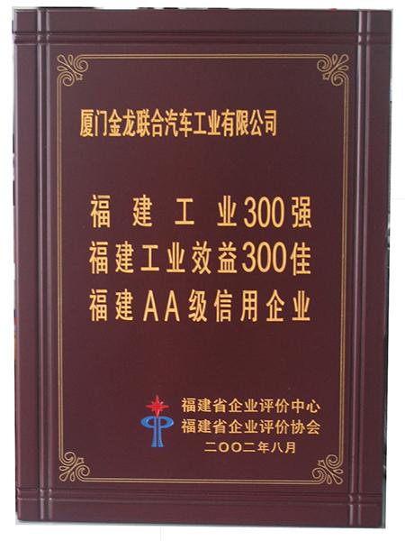 300 صنعت برتر در استان فوجیان / 300 شرکت دارای کارآیی صنعتی بالا در استان فوجیان / شرکت دارای اعتبار درجه AA در استان فوجیان